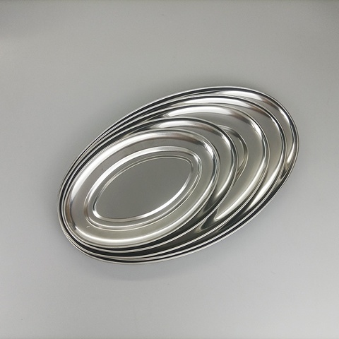 Plato ovalado de acero inoxidable para barbacoa, plato al vapor de huevo y pescado para cantimplora y plato y platos de restaurante